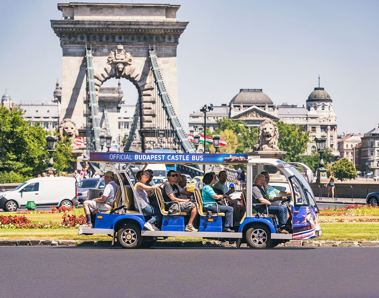 Montez à bord du Bus du Château à la place Clark Ádám et laissez commencer votre voyage inoubliable ! Vous pouvez descendre aux arrêts pour découvrir les sites et trésors cachés par vous-même, puis remonter à bord au prochain arrêt Hop On Hop Off.